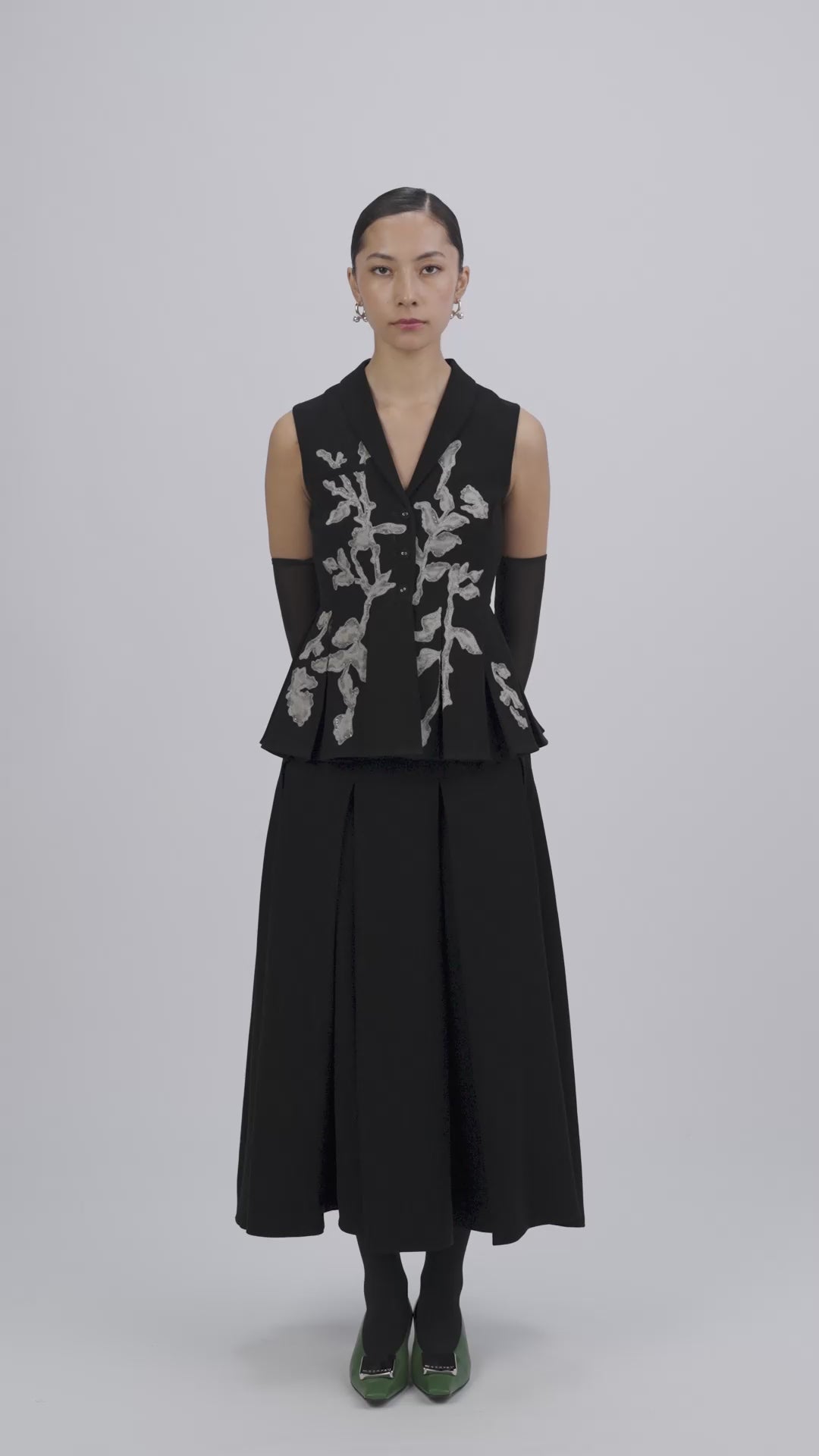 Sleeveless vest top with hand-painted floral appliqués, embellished and transformed into otherworldly forms.