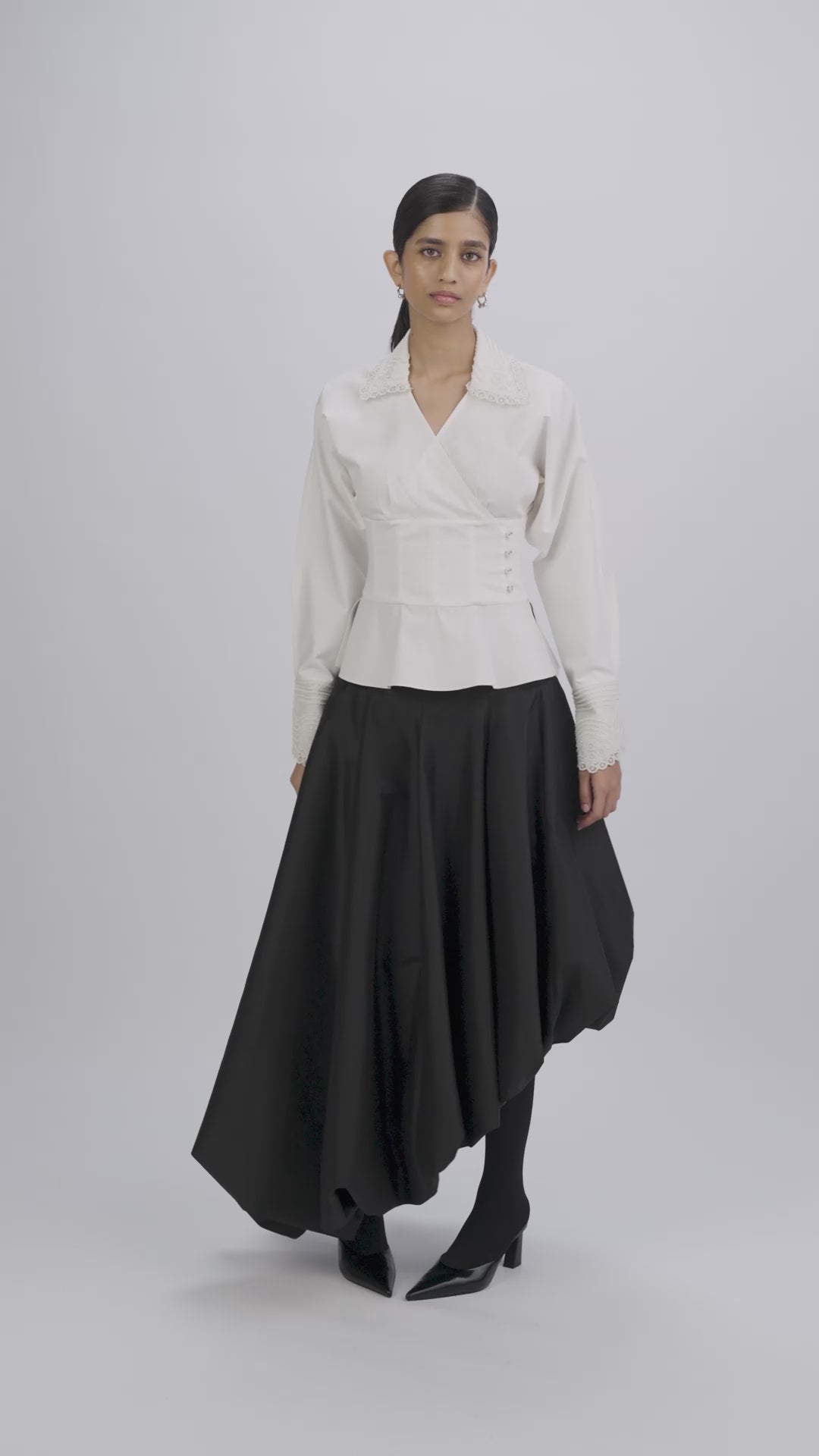 Top with a vintage lace collar, hand-embroidered with micro-caviar beads.