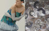 Dress embellished with micro-cut bead fringes and twisted yarns in varying lengths, with a voluminous, asymmetrical gathered hem.