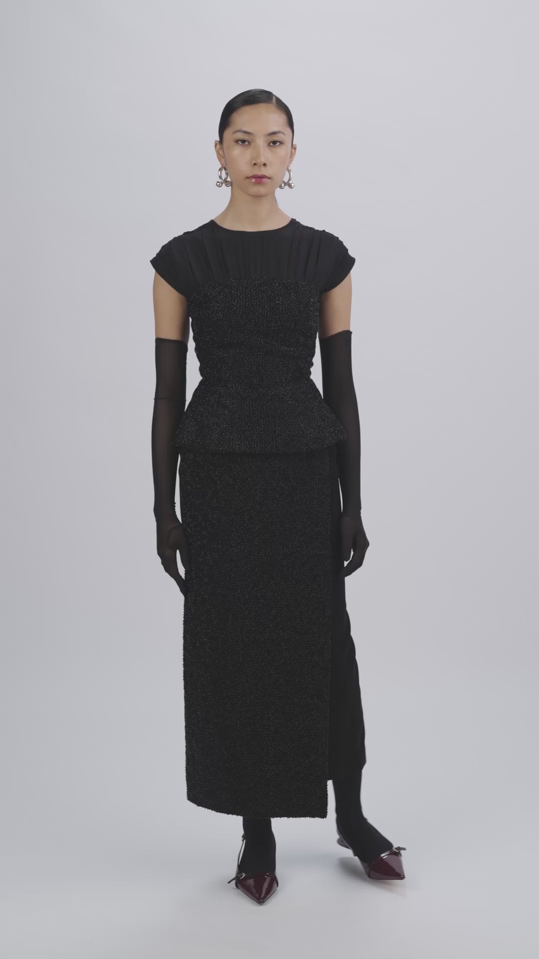 Draped peplum top hand-embroidered with bead and sequin detailing.